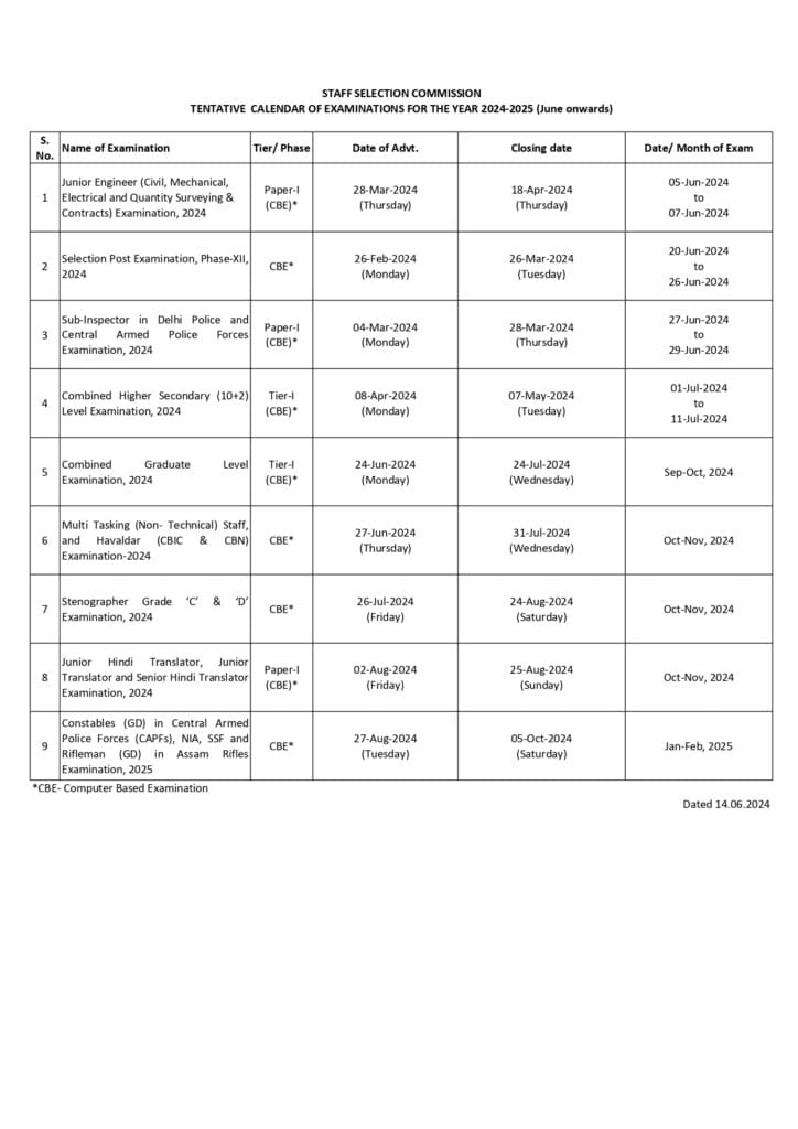 SSC Calendar 2026 जारी