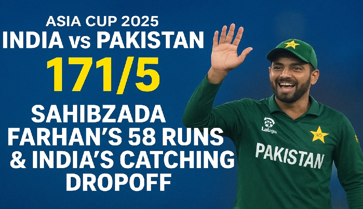 Asia Cup 2025 में पाकिस्तान ने भारत के खिलाफ 20 ओवर में 171/5 रन बनाए. फरहान की 58 रन की पारी और भारत की खराब फील्डिंग बनी चर्चा का विषय.