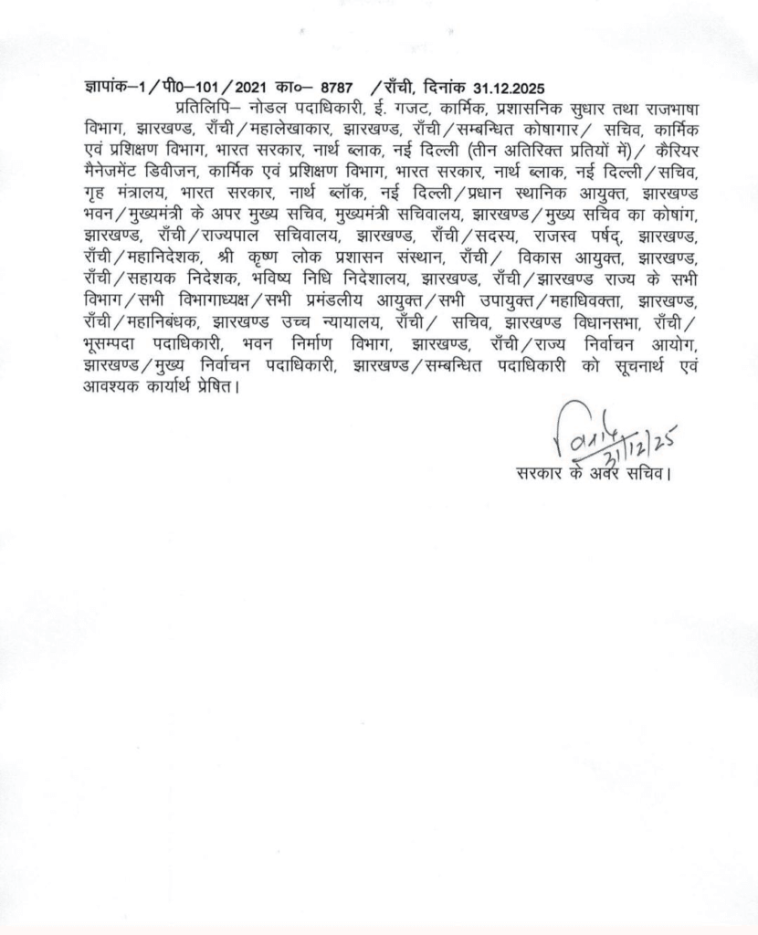 वहीं, एक अन्य बड़े फैसले के तहत उत्कर्ष कुमार, जो अब तक अनुमंडल पदाधिकारी (SDO) के पद पर कार्यरत थे, उन्हें उप विकास आयुक्त सह मुख्य कार्यपालक पदाधिकारी, जिला परिषद, पश्चिमी सिंहभूम (चाईबासा) के पद पर पदस्थापित किया गया है.